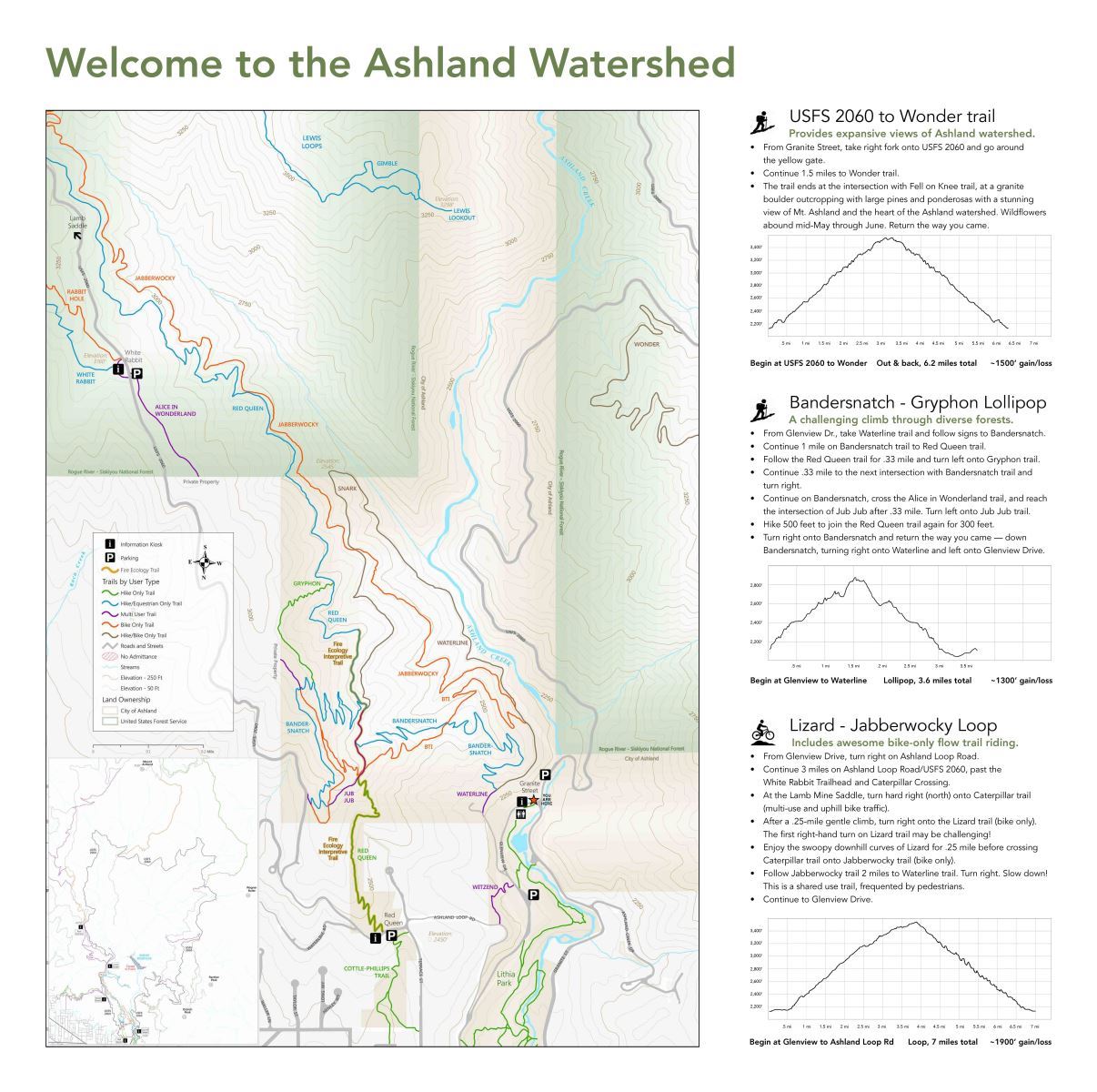 View trails on City property and Forest Service lands in the Ashland Watershed.